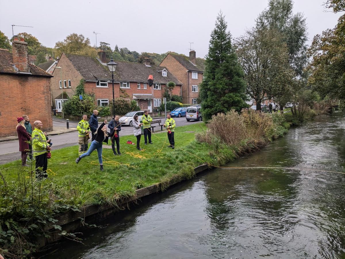 Picture 1: Our hosts, Jamie and Pete (last and third last on the right, in uniform), and the Flood CDT’s 2024 cohort. Note that they kindly allowed a couple of us to dress up and experience the full weight of the water rescue suit!
